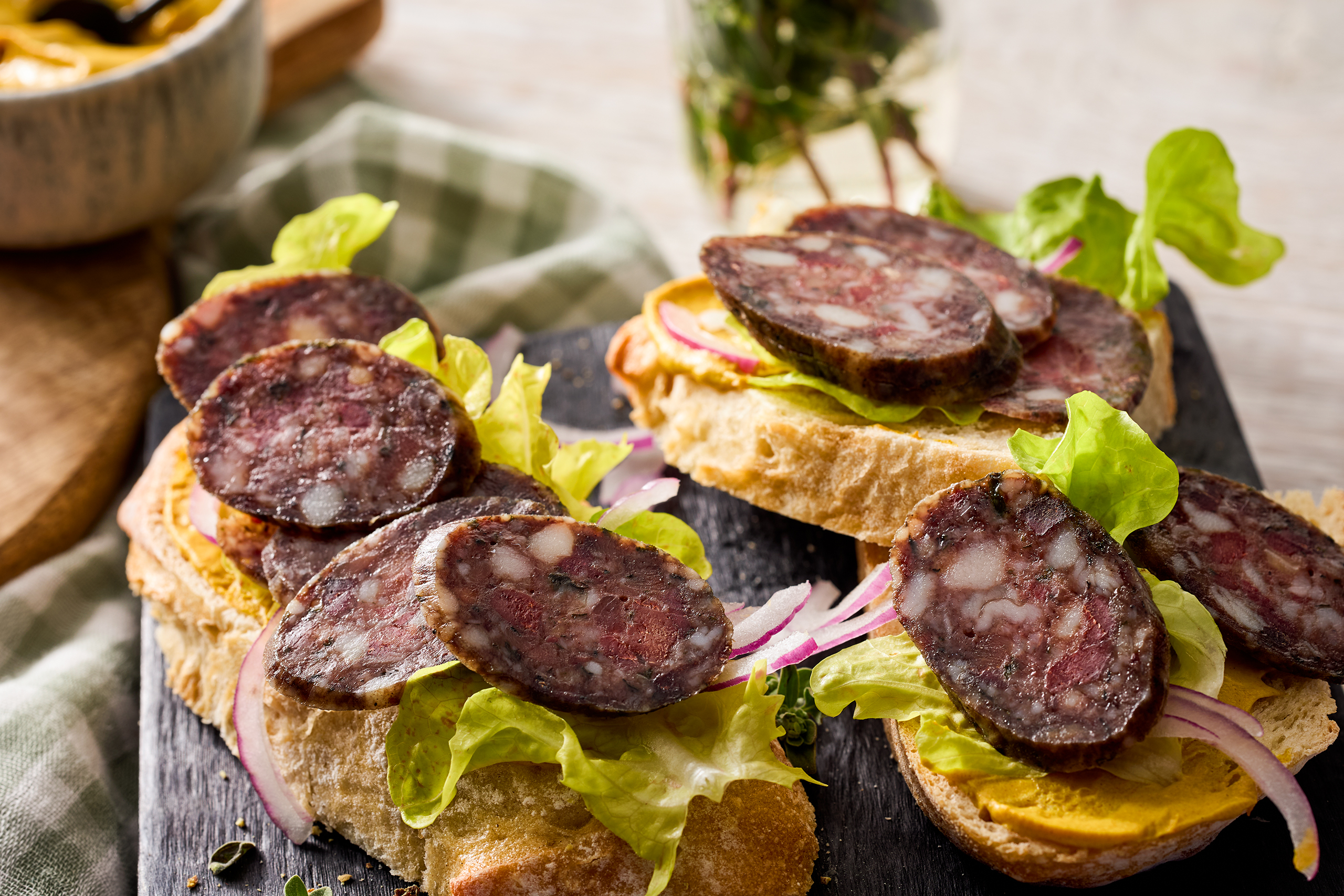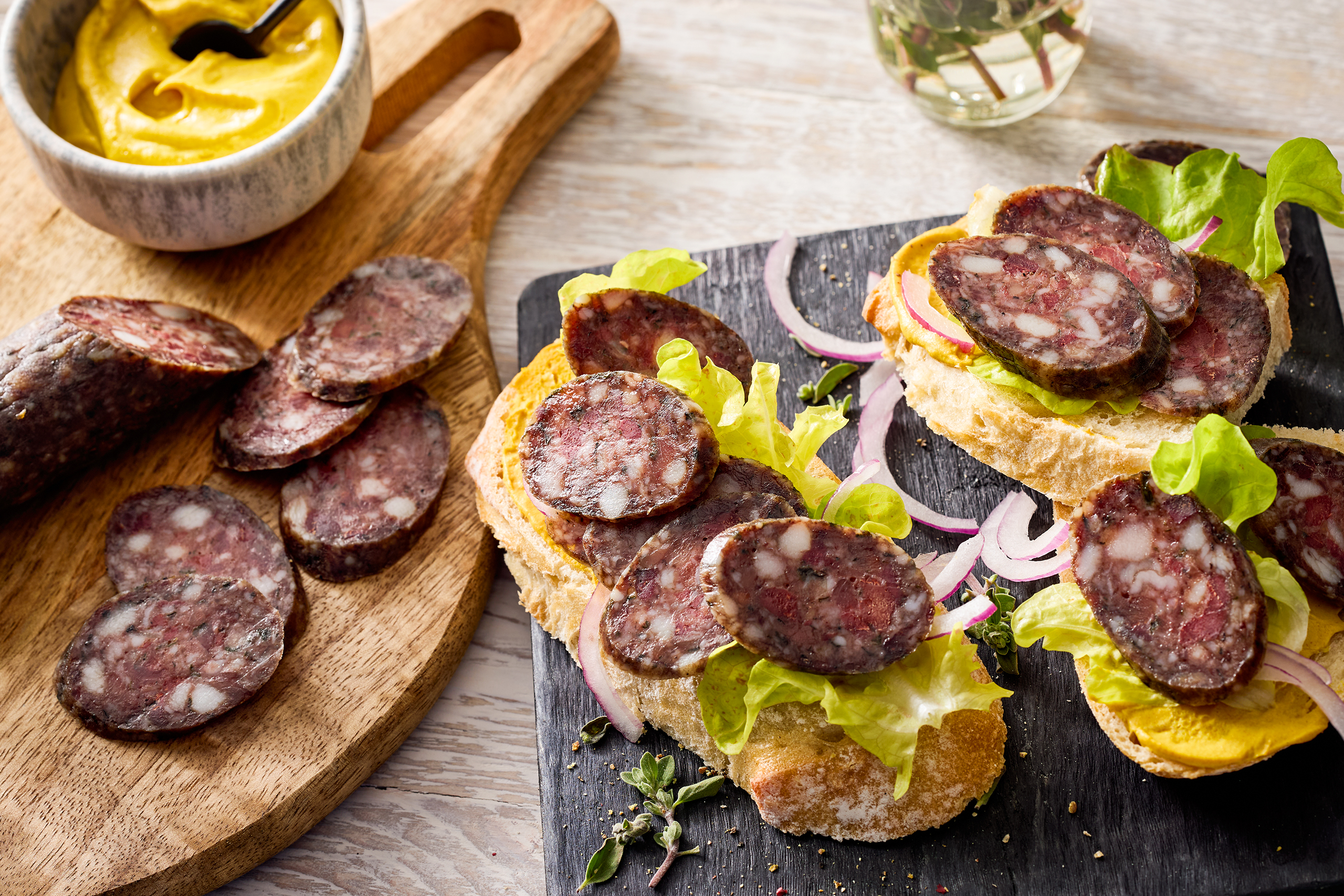 Die Ahle Leberwurst wird über Buchenholz geräuchert, über Wochen getrocknet und verliert dabei etwa 40% ihres Gewichts. So erhält diese Feinschmecker-Spezialität ihr besonders herzhaftes und edel-kräftiges Aroma.