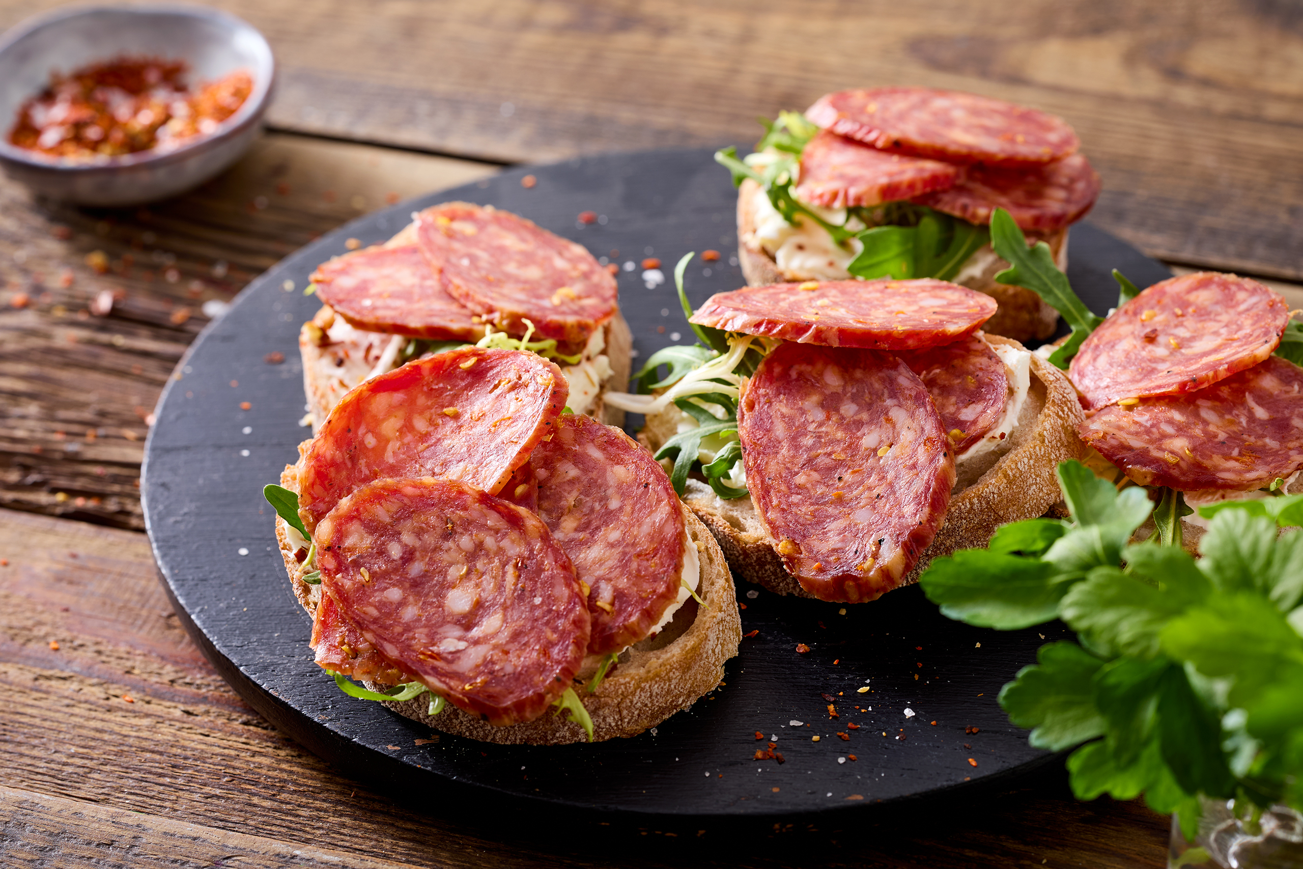 Schweinefleisch, Speck, Speisesalz, Chili 2%, Gewürze, Zucker, Antioxidationsmittel: Ascorbinsäure, Konservierungsstoff: Kaliumnitrat, Starterkulturen, Buchenholzrauch. Wursthülle nicht essbar.