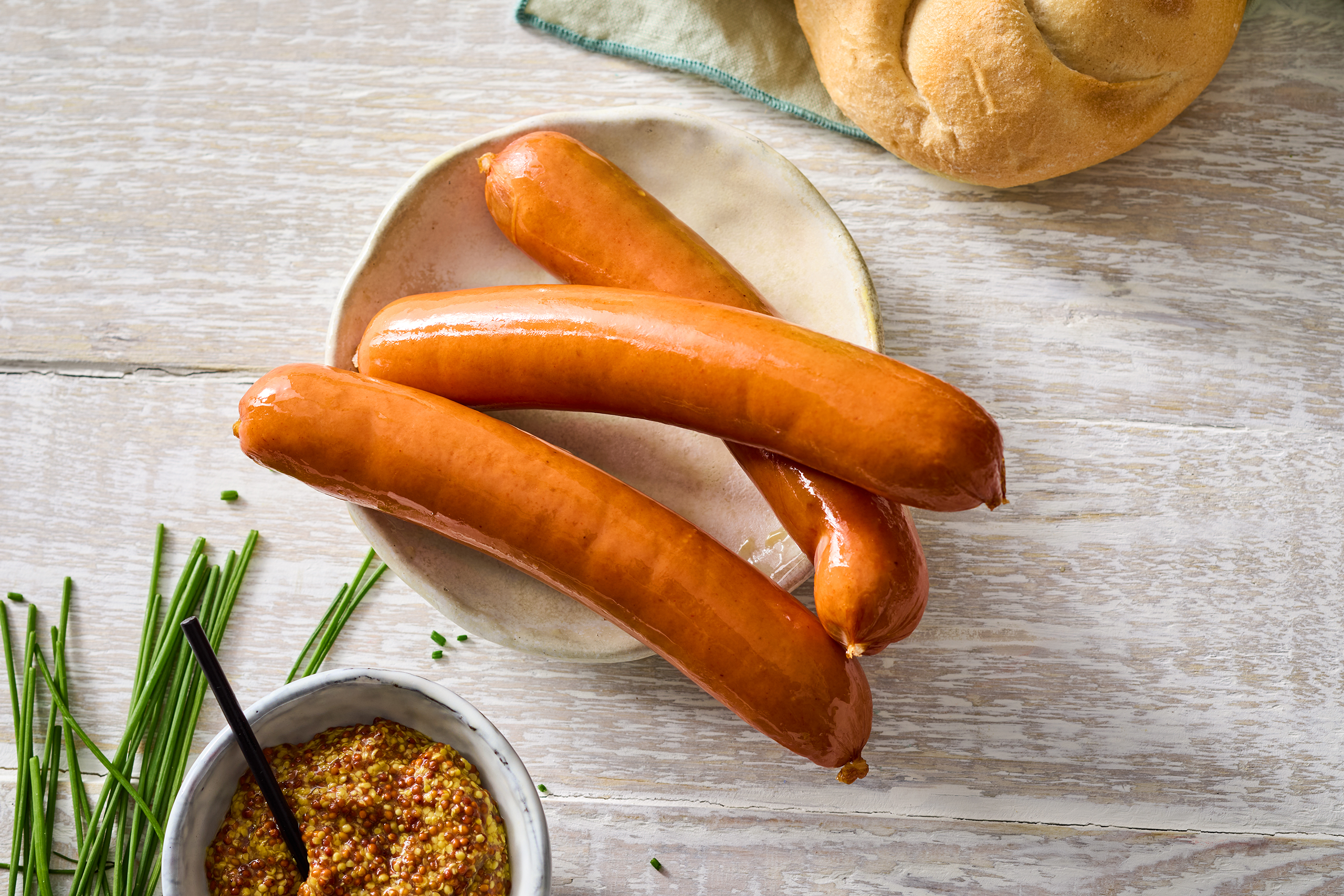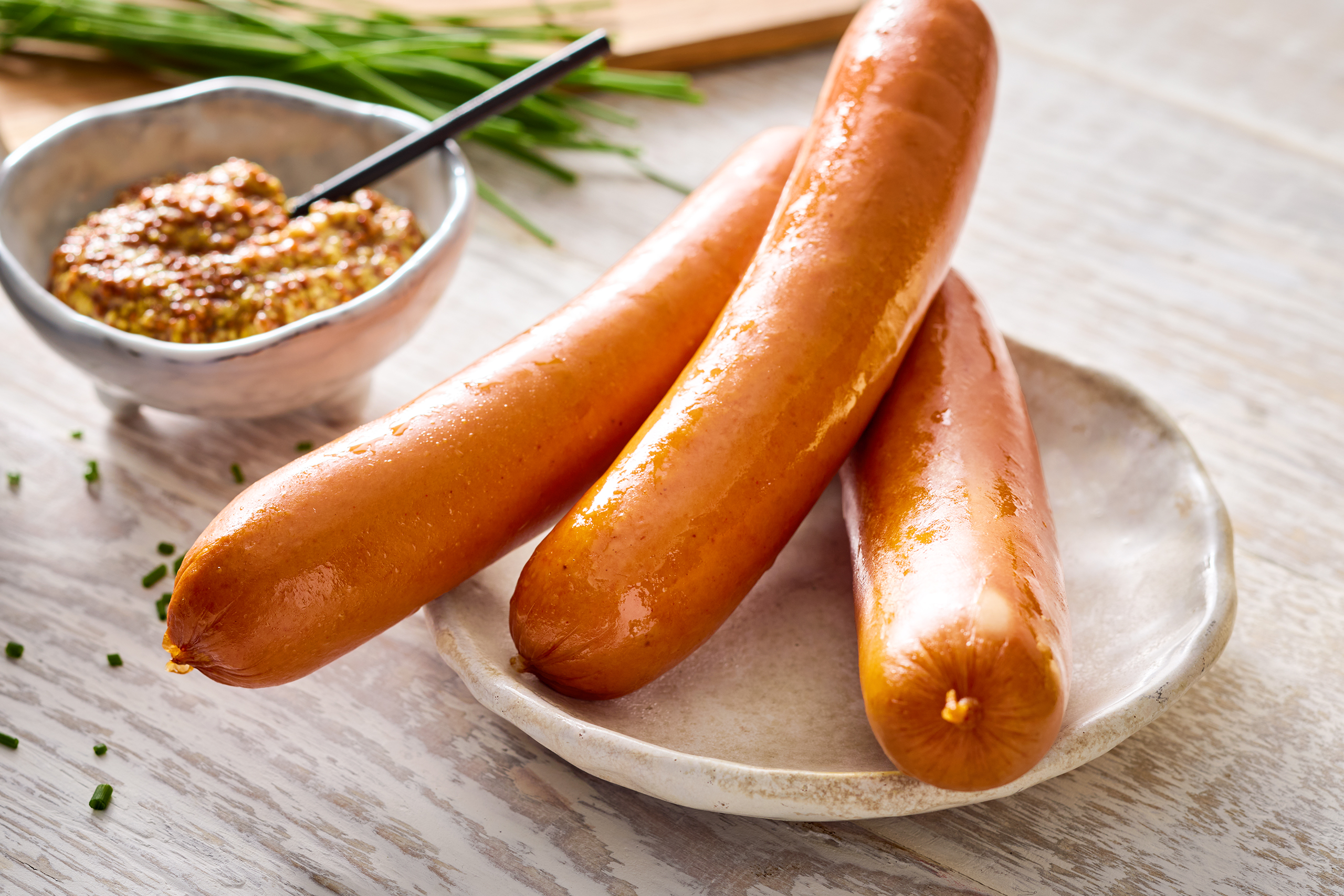 Drei herzhafte Bockwürste im Schweinedarm. Kalt oder warm eine echte Delikatesse.